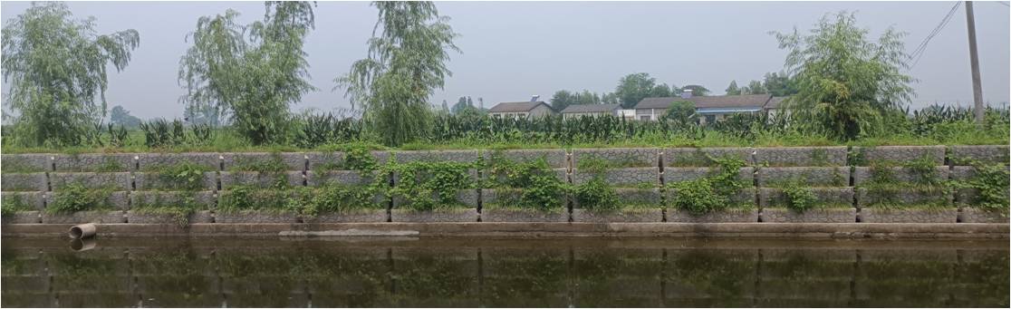 根據(jù)護岸坡度將生態(tài)植生框安裝呈階梯狀(階梯式)或斜坡狀(平鋪式),再將多孔種植顆粒裝填到生態(tài)植生框的種植槽內(nèi),用于種植花草、灌木等植物。